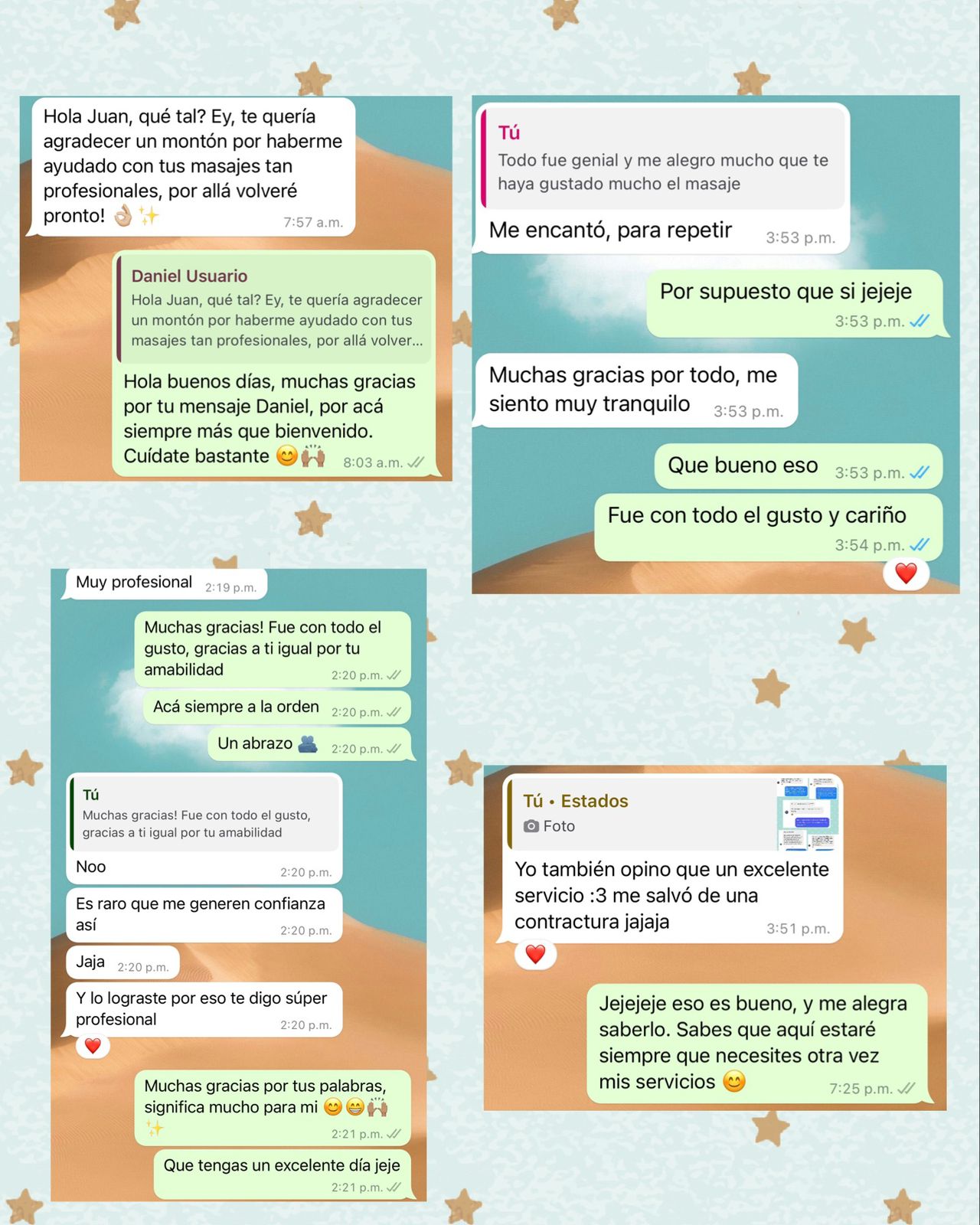 Soy masoterapeuta y mi pasión es ayudar a las personas a mejorar su calidad de vida a través del poder curativo de masajes terapéutico por medio de mis manos. Con más de 3 años de experiencia en la industria, he perfeccionado mis habilidades para brindarte la atención que necesitas. Mi enfoque se basa en la combinación de técnicas tradicionales y modernas, adaptándome a las necesidades específicas de cada paciente. Mi objetivo es proporcionarte un alivio frente al estrés, reducir el dolor, molestias osteomusculares, y así restaurar la armonía en tu cuerpo y mente a corto, mediano y largo plazo.